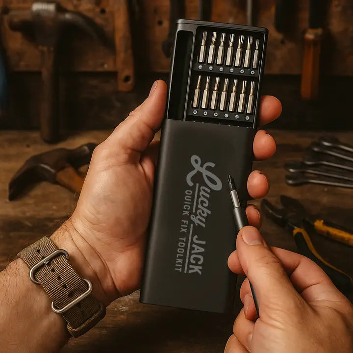 This 24 piece precision screwdriver set is the ultimate DIY men's gift. Effortlessly fix computers, adjust mobile phones, cameras, watches and much more. Every Handyman needs one of these!! Bits Included: • 5-star • 6-star • Triangle • "Y" • Cross • Flathead • Phillips head + more Magnetic slots built into case for securely storing nuts, bolts, or bits!
