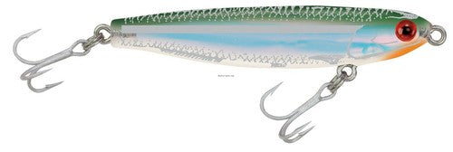 MirrOdine feature bright, reflective, luminescent inserts, "fish calling" rattles and natural 3-D eyes to enhance their realism, plus extra strong hooks. With a twitching retrieve, these baits dart from side-to-side, mimicking a wounded baitfish. Trout, Redfish, Snook, Striped Bass and Tarpon find the MirrOdines to be irresistible.