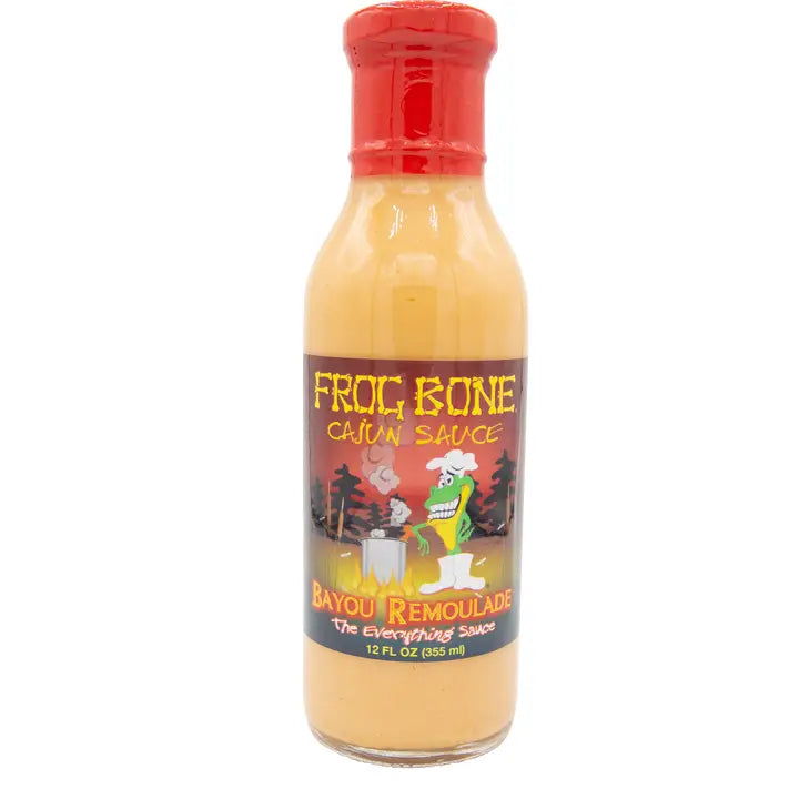 This is one of the first sauces Keith created in his restaurant when a lady asked if he had any remoulade sauce for her shrimp salad. Frog Bone's Remoulade Sauce is the everything sauce! This Remoulade sauce is great on seafood, game, meat, veggies, sandwiches, appetizers and salads. Great for making Shrimp Remoulade Salads and dipping your seafood in. This product contains eggs and soy.